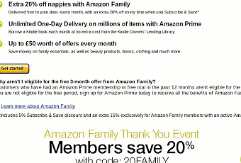 A estas alturas supongo que ya todos sabemos lo conveniente de usar Amazon para cosas como pañales o toallitas húmedas. Lo que es nuevo es el descuento que han añadido a su sistema "Subscribe and Save". Desde hace unas semanas, si haces cinco pedidos regulares, además del 10% de descuento obtenido con "Subscribe and Save", los artículos de puericultura tienen otro 5% y el resto 10%.Otra novedad: apuntándose a Amazon Family (una variante de Amazon Prime) los pañales tendrán un 20% de descuento. Los artículos de puericultura (carritos, sillas de coche, etc) tienen un descuento del 20% hasta el 6 de Octubre.