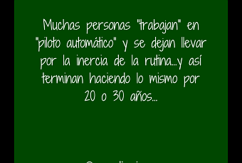 Muchas (demasiadas) personas “trabajan” en “piloto automático” y se dejan llevar por la inercia de la rutina. Así terminan haciendo lo mismo por 20 o 30 años.