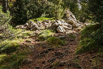 A mitad de camino entre el emplazamiento del castell de Pena y la cima del Sant Amand, el bosque revela otro misterio: un montón de piedras de tamaños similares que se alza entre los pinos como un monumento anónimo. La uniformidad de las rocas y su disposición sugieren claramente una intervención humana, pero ¿de cuándo y con qué propósito?