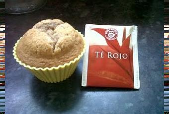 Esta es una variante de una receta de Alma, otra vez, que ella la hizo con té Earl Grey y yo lo cambié por mi favorito, el té Rojo!!! pero vamos que cada uno puede cambiar por el que mas le guste. La verdad es que soy bastante adicta al té, todo empezó la primera vez que pisé Londres y desde entonces no he parado así que cuando vi la receta me faltó tiempo para ponerla en practica. Mientras las hacía me tomaba un té y ahora, escribiendo el post también lo hago, mis amigos se lo toman ya a broma, mientras ellos se toman una caña yo voy con mi tacita y me encanta :) Estas magdalenas son un poco distintas a las otras, a parte de quedar esponjositas como siempre, por la parte de arriba han quedado jugosas, como si el té hubiese subido y al morderlas le da un toque, jeje, que no se como explicar. El sabor del té es ligero, no empalaga, pero no se si es por el tipo de té o si con el resto pasa lo mismo, no lo he probado con mas. Esta es la receta:125ml leche