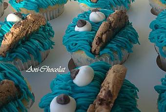Precalentamos el horno 160º. Batimos el azúcar y la mantequilla hasta obtener una textura cremosa. Sin dejar de batir añadimos los huevos, uno a uno, seguimos batiendo y echamos la harina tamizada con la levadura (echamos la mitad de la mezcla), seguimos batiendo e incorporamos la leche mezclada con la esencia de vainilla, seguidamente echamos el resto de harina y levadura. Vertemos 2/3 tercios de la masa obtenida en las cápsulas, y lo tendremos en el horno unos 20 minutos (comprobamos que sale limpio el palillo). Traspasamos los cupcakes a una rejilla hasta que enfríen, una vez fríos, rellenamos con el sabor que más nos guste. Ahora hacemos las bolitas (que serán los ojos de nuestros monstruos), con fondant blanco, les pintamos la pupila (si no tienes bolígrafo comestible, utiliza pepitas de chocolate negro). A continuación, preparamos nuestro buttercream, para ello, tamizamos el azúcar glass y le incorporamos el resto de ingredientes, batimos hasta obtener una pasta cremosa. La echamos en la manga pastelera con la boquilla correspondiente y decoramos. Es una receta muy divertida para hacer con niños y no tan niños...guayyy!!