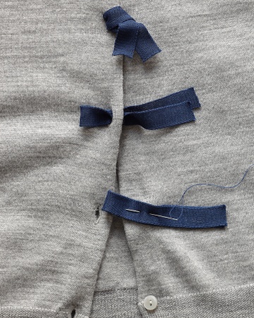 Esta es de las opciones que mas me ha gustado, quita los botones y en su lugar cose una cinta doblada para cerrar pasa las cinta por el ojal y anuda como en el primer ojal.