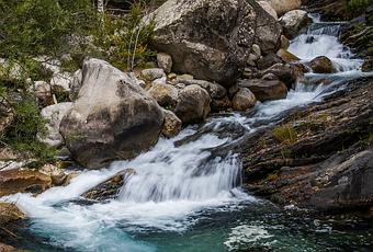 El río Sant Nicolau, que viene de Aigüestortes y acaba en el Noguera de Tor poco después de estas cascadas.