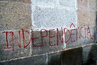 Independencia ¿de qué? Como no sea del vandalismo, no veo otra razón de ser. Ya algún bloque de piedra del muro sufrió ser soporte no justificado de carteles (de allí, probablemente, la decoloración evidente en alguna zona de la fachada) y ahora un vándalo egoísta (¿acaso no firma “a mi”‘) contamina el entorno.