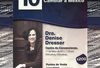 Previos… Denise Dresser impartió la conferencia “10 propuestas para cambiar a México” en la ciudad de Chihuahua[1]. La conferencia empezó media hora tarde, después de la espera tuvimos a bien escuchar la mención de todooos los patrocinadores por parte del maestro de ceremonia –si tenemos que conocer a los patrocinadores, porque mejor no se anuncian en el programa-, vimos dos videos alusivos a los organizadores, escuchamos sus dos respectivos discursos. Una formalidad que me hacía dudar del propósito de mi presencia ahí. Cuando el maestro de ceremonia estaba por dar lectura el curriculum de tan notable politóloga, ésta lo interrumpió con una señal para indicarle que se obviara ese paso…supe por fin que no me había equivocado de evento, esa era la Dresser que yo quería escuchar: sin formalismos, directa y analítica de la situación.Denise Dresser al micrófono…