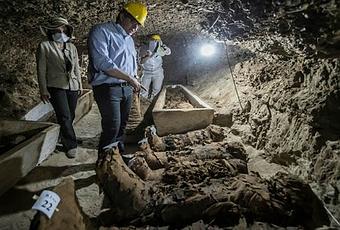 Se informa que las momias no pertenecieron a la realeza. El ministro de Antigüedades, Jaled el Enany, dijo en una conferencia de prensa celebrada cerca del sitio arqueológico en el desierto que el descubrimiento es «la primera necrópolis humana con tantas momias encontrada en el centro de Egipto».Según Mohamed Hamza, director de excavaciones de la Universidad de El Cairo, se trata de un descubrimiento «sin precedentes», ya que es el único hallazgo de tanta importancia de los que se han hecho en la zona.Las catacumbas donde encontraron las momias, situadas en el distrito de Tuna al Yebel, se remontan al período greco-romano, entre el siglo III a.C. y el siglo III d.C.En abril, arqueólogos egipcios encontraron seis momias faraónicas en una tumba cercana a Luxor, que data de la XVIII dinastía, que gobernó al Antiguo Egipto entre los años 1550 y 1298 a.C. Esta semana, especialistas también descubrieron la tumba de una princesa egipcia de la XIII dinastía de faraones.