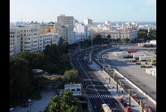 He querido buscar una fotografía en la que se viese lo que es el paseo de Canalejas, pero no he encontrado otra que esta, pero os la describo. Saliendo desde la plaza de San Juan de Dios y dejando a mi espalda el edificio del Fénix, que por cierto una vez bajó volando porque quería ver a la gente de cerca, y al abrigo de los edificios, emprendemos el paseito, comtemplando los establecimientos característicos de la zona, como la marisquería Joselito, la papelería Omega, desgraciadamente cerrada, el emblemático edificio de la Transmediterranea, hoy Acciona, y a la vez contemplando bajo ese cielo azul, que parece que son vistos en alta definición de lo intensos que se ven, y es que señores, pocos cielos son tan azules como los de Cádiz, los enormes barcos de pasajeros, atracados en nuestro muelle, siguiendo nuestra ruta, llegamos a la pequeñita y coqueta Plaza de las Tortugas, y al alzar la vista, nos encontramos al imponente y hermoso edificio de la Diputación, que si los políticos que lo habitan estuviesen a la altura del edificio, otro gallo nos cantarían, merece la pena visitarlo, precioso, y a continuación llegamos a la Plaza de España, con su monumento a las Cortes de 1812 y sus edificios, como por ejemplo el de las Cuatro Torres con sus miradores, que preside la plaza, seguimos bordeando la citada plaza y nos encaminamos a la conocida zona de ocio de los jóvenes, llamada Punta de San Felipe, con su puerto deportivo, después llegamos a las murallas de San Carlos, otro lugar emblemático de la ciudad, y que es el comienzo de un hermoso y enorme mirador al mar, que comienza con ese marco sin igual que es la Alameda de la Apodaca, en donde se encuentra la Iglesia del Carmen, que parece sacada de un pais iberoamericano, es un lugar al que hay que ir a verlo, porque es simplemente maravilloso. Aquí paramos la visita, porque hay que ir a tomarse una cervecita fresquita, otro día seguimos, ya callejeando. Un saludo, espero que os guste y se admiten sugerencias, mucha salud y mucha suerte.