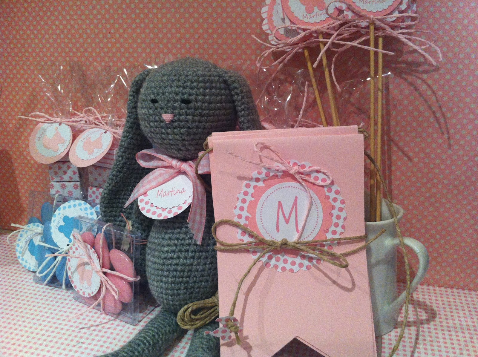Y.. además... una conejita amigurumi en gris,,, que es el regalo de la madrina...para la niña