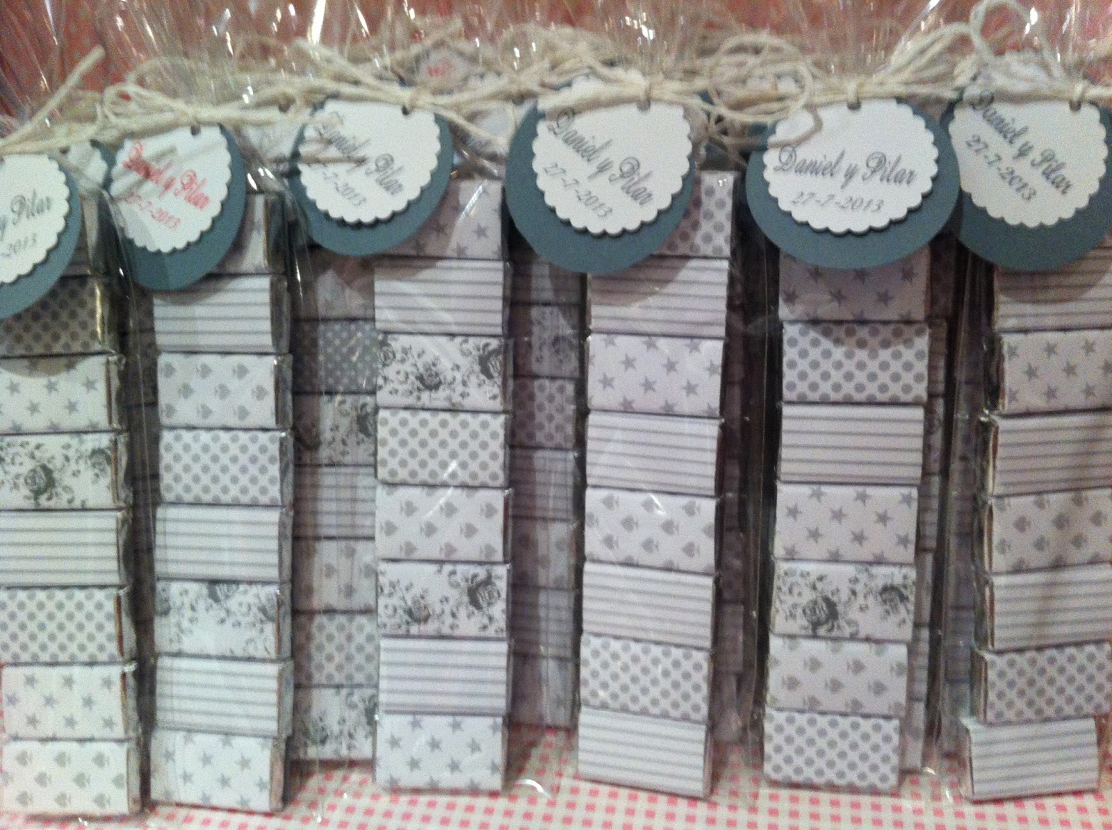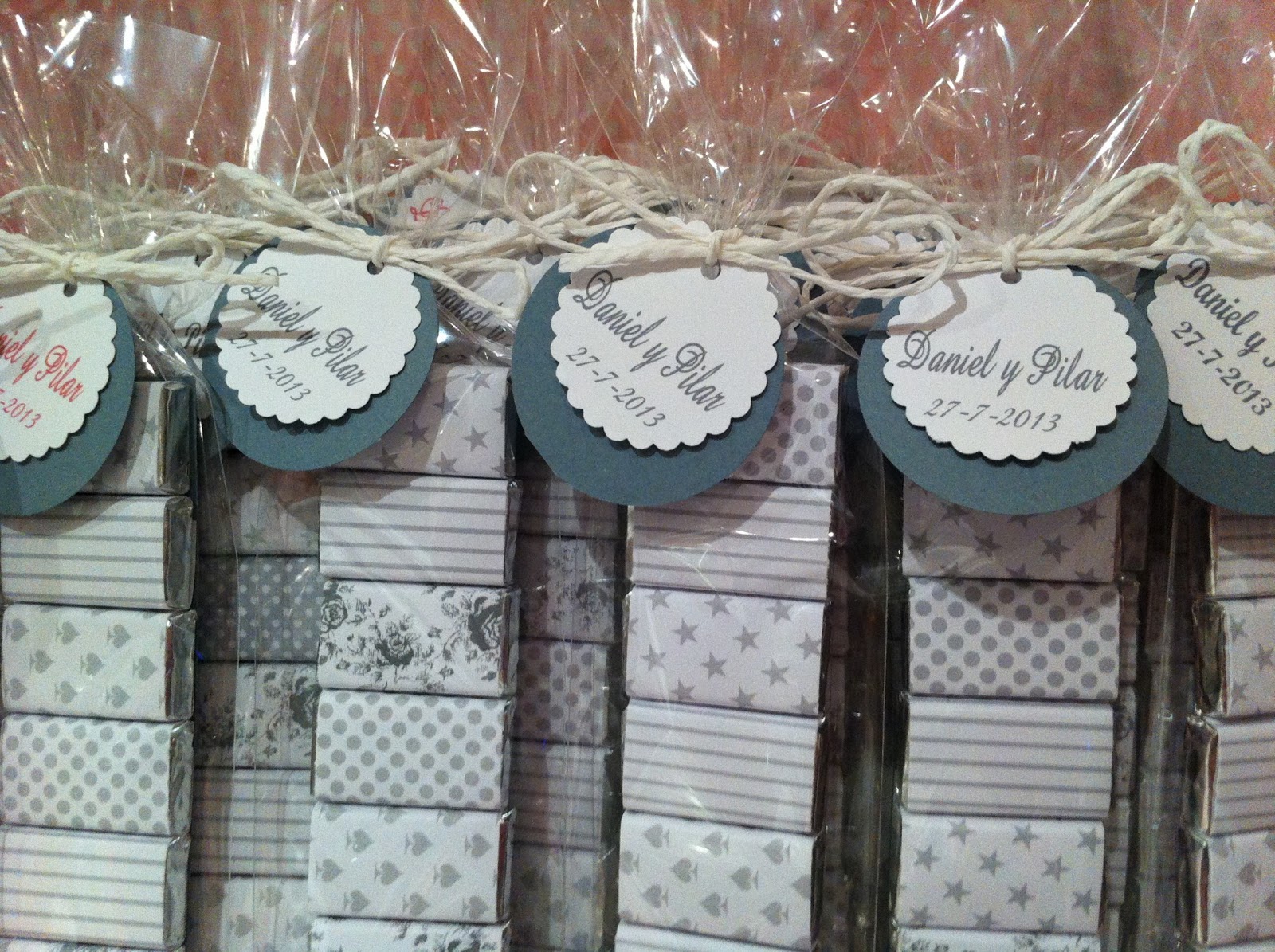 Y en las etiquetas, varias tipografías con los nombres y fecha del enlace