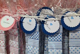 Y estos son los paquetitos de chocolatinas que hemos hecho para los invitados de Pilar En tonos rosas y azules. Las etiquetas van personalizadasEsperamos que os gustenhandmade with love