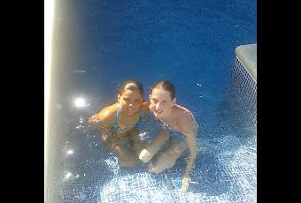El viernes por la mañana ,despues de hacer mis deberes veraniegos, nos fuímos a la playa a nadar un rato, ya que el domingo hago mi tercera travessia y queria practicar un poco mas. Practique los cambios entrenados en la piscina, mi padre me acompaño nadando a mi lado,pero con trampas, se puso gafas y tubo....jaja....Estoy muy contenta parece que no me he agotado tanto, creo que me ira bien esta travessia...Como sabeis el dia antes de una prueba estoy de relax y para mi sorpresa , paso la noche del viernes y el dia de hoy en casa de Abi....me encanta