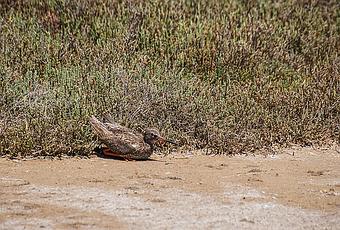 El archibebe se piensa que la cigüeñuela no lo va a ver.