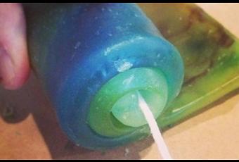 ¡Esta vez, use un tinte sólido que sea fácil de disolver porque la cera incolora se vierte en la bandeja y se crea el color en la bandeja! Muy fácil de manejar puede usar parafina previamente colorada con crayolas de cera