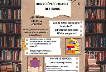 Desde LiteraturElx se suman a una causa solidaria: DONACIÓN DE LIBROS para las Bibliotecas públicas de Alfafar y Algemesí. Esta asociación está realizando una recogida de libros (editorial, autopublicados...) desde Elche, Alicante y Valencia.