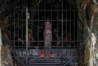 Una virgen en una antigua cueva a la que alguien aún pone velas. --- Camprodon, Girona. [EXIF]