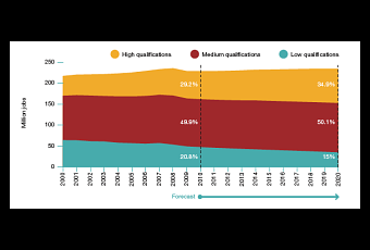 En Europa pasa algo similar. El desempleo de las personas con baja cualificación duplica al de las personas con un nivel superior a secundaria y casi triplica al de las personas con los niveles competenciales más altos.