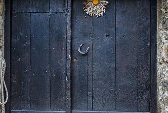 Me sorprendió ver esta flor de cardo seca en la puerta de una casa en Beget. En Euskal Herria es muy típico, pero no aquí.