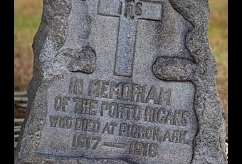 “Miers entered Calvary Cemetery to inspect the marker (la lápida colgada en este post). On the tombstone, he read, “In Memoriam of the Porto Ricans who died at Picron, Ark. 1917-18.” A mass grave.” -- Los paréntesis son míos.