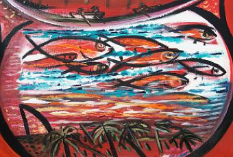 Arrímate a la orilla, Flora Fong, técnica mixta sobre lienzo, 2009.