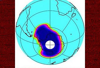 Cada año, a finales del invierno y principios de primavera en el hemisferio sur, el cloro y el bromo a partir de compuestos producidos por el hombre causa la destrucción casi total de ozono en la estratosfera de la Tierra en una capa de unos 20 kilómetros sobre la Antártida.