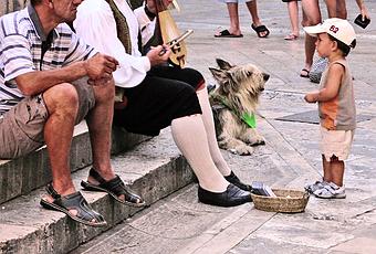 El músico, el perro y el niño... y un señor que mira al infinito