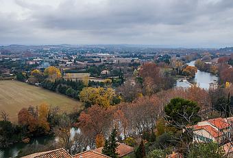 Vistas del río Orb y su entorno desde la plaza de la catedral de Saint Nazaire. No hacía un día muy bueno.