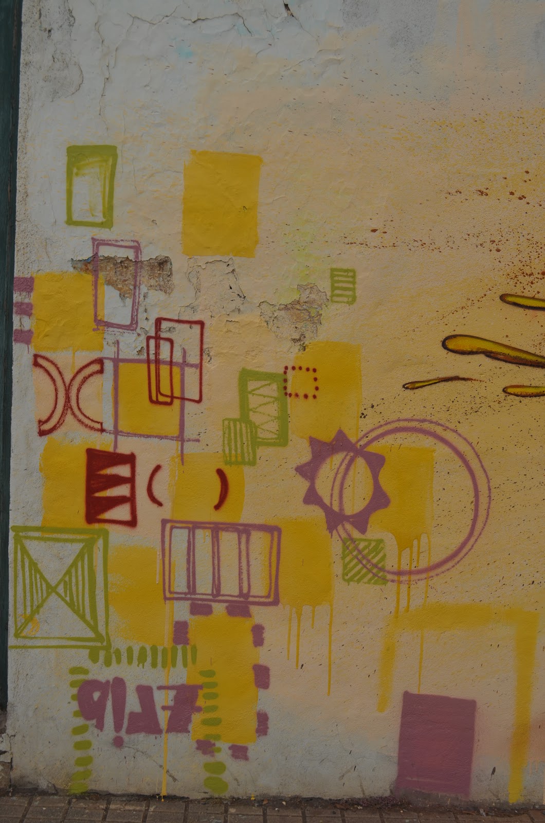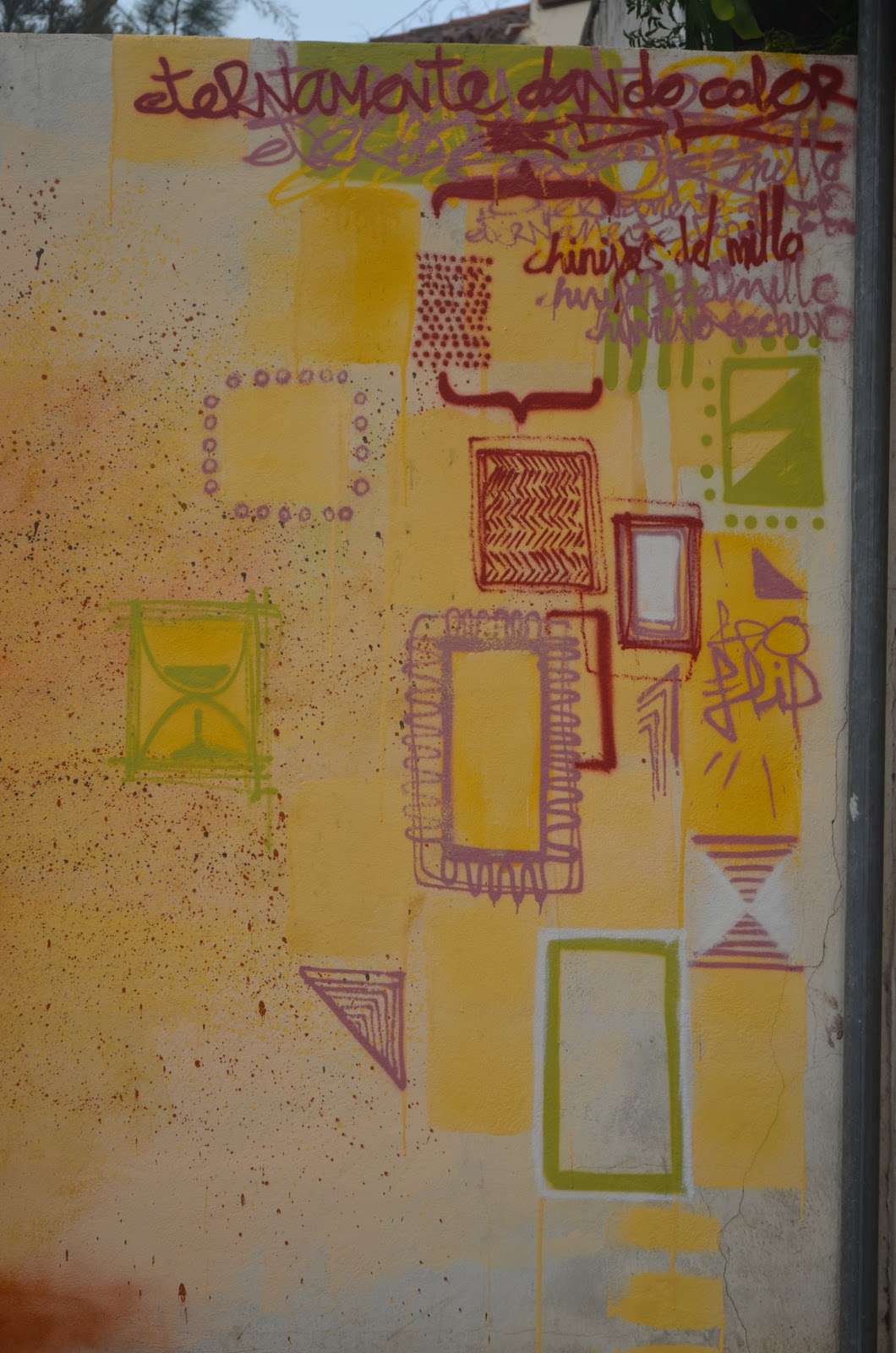 Sobre la acera había botes de espray de mil colores, un cubo lleno de pintura, un rodillo, y en medio de todo ello acuclillado repasaba la base de su mural. Las rastas le llegaban a la cintura, un perro dormilón al borde de la obra miraba a los transeúntes. Alrededor grafitis nominales que marcaban territorio que tenían a los vecinos artos. Paseantes de de niños, de perros, un policía que se para, que le pide el carnet, que le dice que eso está prohibido, que mira el mural, y luego calla. Guarda el talonario de multas, da la vuelta, se sube en el coche se va. Yo miro el mural, lo miro a él, en calma sigue reafirmando el suelo. Sigue creando un lugar mágico en medio del tránsito de paseantes de aburrimientos, de colesterol, de triglicéridos, de domingueros, de ciclistas, de corredores, coches humeantes, de cualquiera. En su mundo de creación. Y yo entro en él, me quedo allí, mientras repasa con el bote los bordes de la figura, pasan horas, y el perro ya me mira como si me conociera. Yo también lo conozco. Me acerco lo acaricio y mueve la cola. Me gusta, le digo. Me gusta tu mural. Gracias. A ti.
