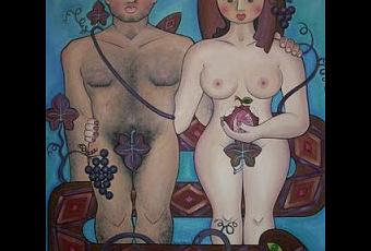 "Y es entonces ahí que la serpiente seduce a la mujer para que coma el fruto prohibido"