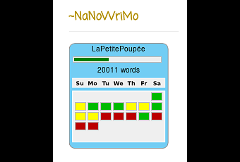 Así que, en resumen: medio calendario del NaNo será rojo. Solo tengo veinte mil palabras, ahí me quedo, pero en todas esas están la semilla de Páginas de Metáforas. Ya os iré desgranando más cosas más adelante, cuando pueda.