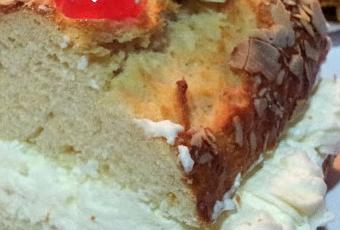 En un bol echas los ingredientes, la harina, la levadura fresca, la nuez moscada, 2 huevos, leche, el aroma de azahar, en un lado echa la sal (que no toque la levadura), la ralladura de naranja y limón y el azúcar, con una cucharada de palo los mezclas, y cuando veas que es una masa menos pringosa, enharinas la mesa de trabajo y a amasar con las manos, quizá vaya pidiendo más harina (esto sucederá si después de un buen rato amasando se queda pegada a tus manos), vas echando poco a poco, tienes que lograr que quede una bola, dándole algunos golpes (dejarla caer y girarla hasta darle una forma redonda a la masa, esto en repostería se llama bolear. La dejamos reposar en un bol 3 horas, tapada con un trapo húmedo. Cuando haya transcurrido el tiempo, sacamos la masa del bol, nos echamos harina en las manos, y con el dedo índice, hacemos un agujero en la masa, poco a poco, y le vamos dando forma de roscón (como podéis ver en la foto), con cuidado lo ponemos en una bandeja de horno con papel vegetal, con el huevo que nos queda pintaremos el roscón y dejamos que fermente 1 hora más (meterlo en el horno, sin encender, con un vasito debajo que contenga agua, asi no se resecará. Transcurrido el tiempo, volvemos a pintar el roscón con el huevo, mientras precalentar el horno 180º (arriba y abajo sin ventilador), dejamos el vasito de agua, y decoramos con cerezas confitadas, frutas escarchadas, almendras laminadas y azúcar mojado con aroma de azahar (echa unas 5 cucharadas de azúcar en un bol pequeño y unas cuantas gotas de azahar, de manera que quede el azúcar compacta), ya tienes decorado el roscón y listo para ir al horno. Lo tendremos en el horno entre unos 20 y 25 minutos, en cuanto esté doradito lo sacamos y dejamos enfriar sobre una rejilla. Para hacer la nata montada debemos tener la nata bien fría y el recipiente donde lo hagamos también, montamos y cuando esté a medio montar echamos el azúcar poco a poco y la cucharada de crema de queso, ya tenemos lista y firme nuestra nata. He esperado a que esté frío para abrirlo por la mitad, y rellenarlo con la nata, para ello he utilizado una manga pastelera desechable y boquilla de rizo. Cada año está más rico. Besos...