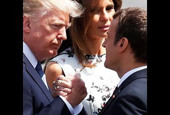 [Durante la celebración del Día de la Bastilla en París, el presidente estadounidense, Donald Trump, y su homólogo galo, Emmanuel Macron, intercambiaron un apretón de manos que duró casi medio minuto.