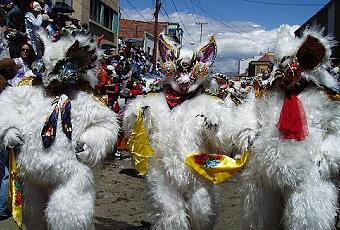 Con el sol en alto, fácilmente hacían 32 o 33 grados. Observando a los danzarines, uno puede deducir que embutidos en sus trajes literalmente se asan como pollos al vapor. Especialmente aquellos disfrazados de diablos enmascarados. Enfundarse en un traje de oso polar ya es como una tortura. He bailado de diablo cuando era adolescente, sé de lo que hablo; cuando uno se pone careta, al poco rato empieza a sudar de la cabeza como en un sauna portátil. Y hacerlo por horas y horas, imagínense. No entiendo entonces, por qué tanto sacrificio. Yo lo hice por curiosidad una sola vez, hay gente que lo hace cada año como en una suerte de rito, como si en ello se le fuera la vida.