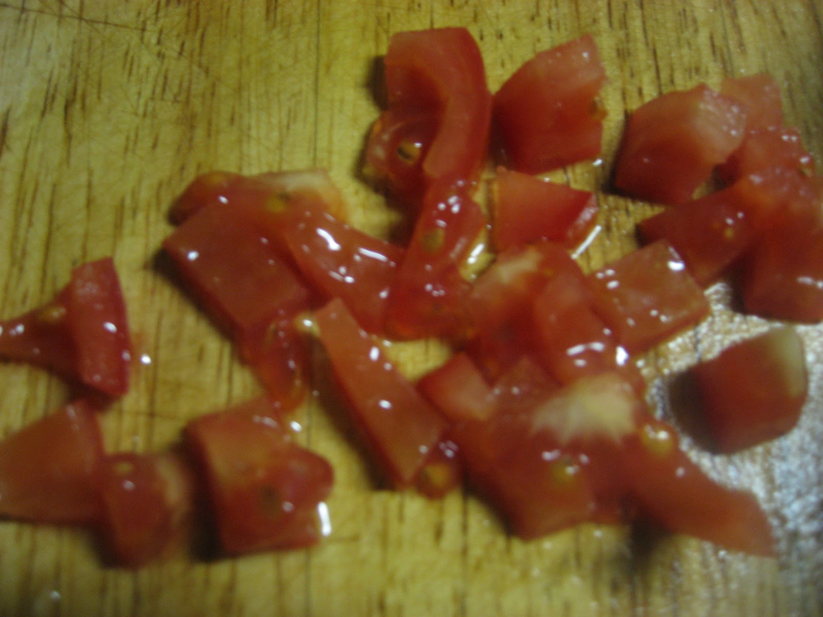 3º - Cortamos el tomate a trocitos. Las anchoas. Desmenuzamos el Atún y cortamos en pequeños tacos la Mozzarella.