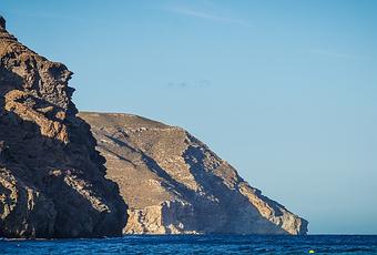 Entre estas dos formaciones rocosas se encuentra la recóndita cala de San Pedro. Sólo se puede llegar por mar o por tierra tras una buena caminata.