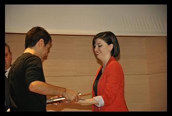 Ana Pomares entregó el 3er accesit a Rodrigo Tovar Monge por "El héroe".