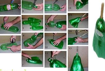 El primer paso consiste en cortar el culo a una de las botellas y hacer una serie de cortes longitudinales paralelos, para formar las “cerdas” de la escoba. Repetimos el proceso con las demás botellas, pero en ese caso cortaremos también la parte del tapón.
