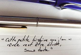 Traducción: "Esta pequeña historia que he soñado quiere ser escrita, sin duda."]