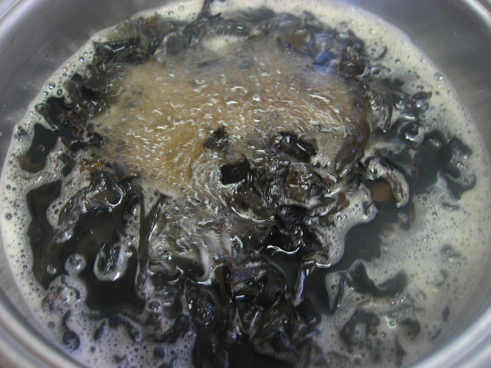 2º - Las setas las pondremos en agua y la colocaremos en el fuego hasta que comience a hervir, es ese momento retiraremos las setas, las escurriremos y las reservaremos igual que con la cebolla.