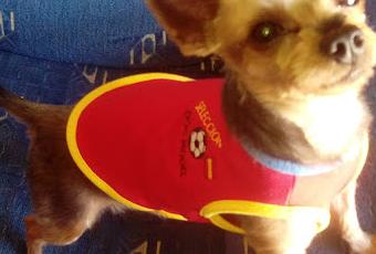 Dentro de un rato comienza el partido de fútbol entre España-Italia y mi chiquitín ya esta preparado buscando un hueco en el sofá. ¿A que esta guapo?. Además os contaré un secreto sobre Terry y es que le asustan los partidos de la tele, así que en cuanto escuche el ambiente en la caja tonta correrá como de costumbre a esconderse bajo mi cama.