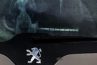 Lo propio hubiera sido que dentro del coche fuera un verdadero león, pero sin embargo un amable perro parecía preguntarse lo mismo, incluso llevaba tanto tiempo preguntándoselo que parecía hasta aburrido.