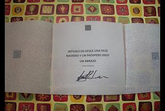 Hace una semanita recibí un aguinaldo de Rituals que me encantó, además llevaba una tarjeta de felicitación que ahora os enseño para trasladaros la feliciación de la marca, además de la mía de FELIZ AÑO 2012. Espero que mañana tengáis una fantástica salida y entrada de año, y que el nuevo año sea mejor que este. Yo para mí así lo espero ya que al final suspendí las oposiciones, y con las perspectivas futuras parece que el tema oposiciones va a estar complicado, por lo que tengo que encaminar mi futuro por otro lado aunque también el tema de trabajo privado está complicado.