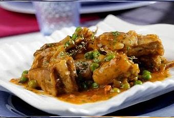 Ingredientes para preparar Estofado de cordero con guisantes1 pierna de cordero deshuesada de 1kg400 g de guisantes en lata1 cebolla1 diente de ajo1 cucharada de salsa de tomate1/2 vaso de vino blanco3 cucharadas de aceiteCómo Preparar Estofado de cordero con guisantesCortar la cebolla en aros y la carne en trozos regulares, añadir el aceite y meter en el microondas 25 minutos al 100%.Incorporar los guisantes, el vino y la salsa de tomate y conectar 10 minutos más.Rectificar la sazón y servir muy caliente.