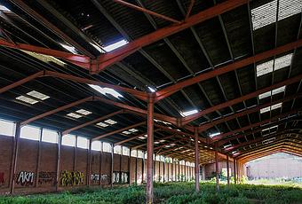 Ante el abandono de esta instalación alguien quiso sacar provecho y se llevó la mitad de las columnas de acero de la izquierda. No se atrevieron a llevarse más porque se habría derrumbado todo el techo.