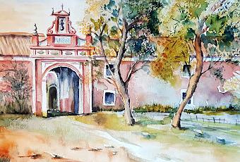 La exposición se ha presentado en el Centro Cívico de Bellavista y actualmente se expone en Dos Hermanas. En ella participo con esta acuarela de dicha Hacienda.