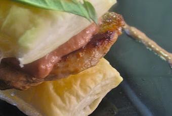 Primero colocamos una hoja de hojaldre, encima el filete, un poco de salsa y rematamos con otra hoja de hojaldre. Unas setas por encima y una hoja de albahaca cortada a tiras y ya podemos comenzar a deleitarnos con el plato.Espero que os guste tanto como en casa. Todo un éxito.