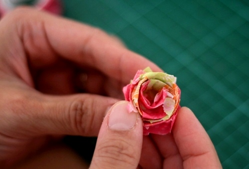 Una vez enrollada del todo pega el extremo colócala en la mesa y ábrela un poquito no me digáis que no es precioso.