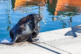 Febrero, verano de este año, el sol de la tarde castiga a la ciudad.En la banquina de pescadores en el Puerto un lobo marino sale del agua y se despereza ante la vista de los turistas allí presentes.