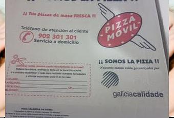 Realmente, este tipo de comida, ¿qué tiene que ver con Galicia calidade? Como no sea que lleve percebes o nécoras, un buen chuletón, unas almejas, berberechos o los siempre apetitosos mejillones. Entrando en pizzamovil solo encontré quesos, bacon, hamburguesa, champiñones, jamón, tomate y como producto "exótico" a la piña. La publicidad nos invade de manera absurda y este sello lo demuestra con creces.