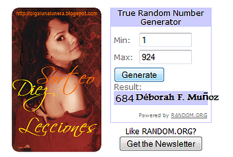 Ya tenemos ganador del ejemplar de 10 Lecciones que se sorteaba en el blog.La ganadora dispone de 48h para reclamar su premio enviando un mail al correo del blog, si pasado el plazo no he recibido dicho mail, procederé a realizar un nuevo sorteo.¡Enhorabuena a la ganadora!