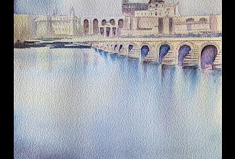 El mes de marzo llovió tanto que hasta el río Guadalquivir a su paso por Córdoba se mostraba repleto de agua y hacía mucho tiempo que no lo veía así. No dudé en pintar esta acuarela.